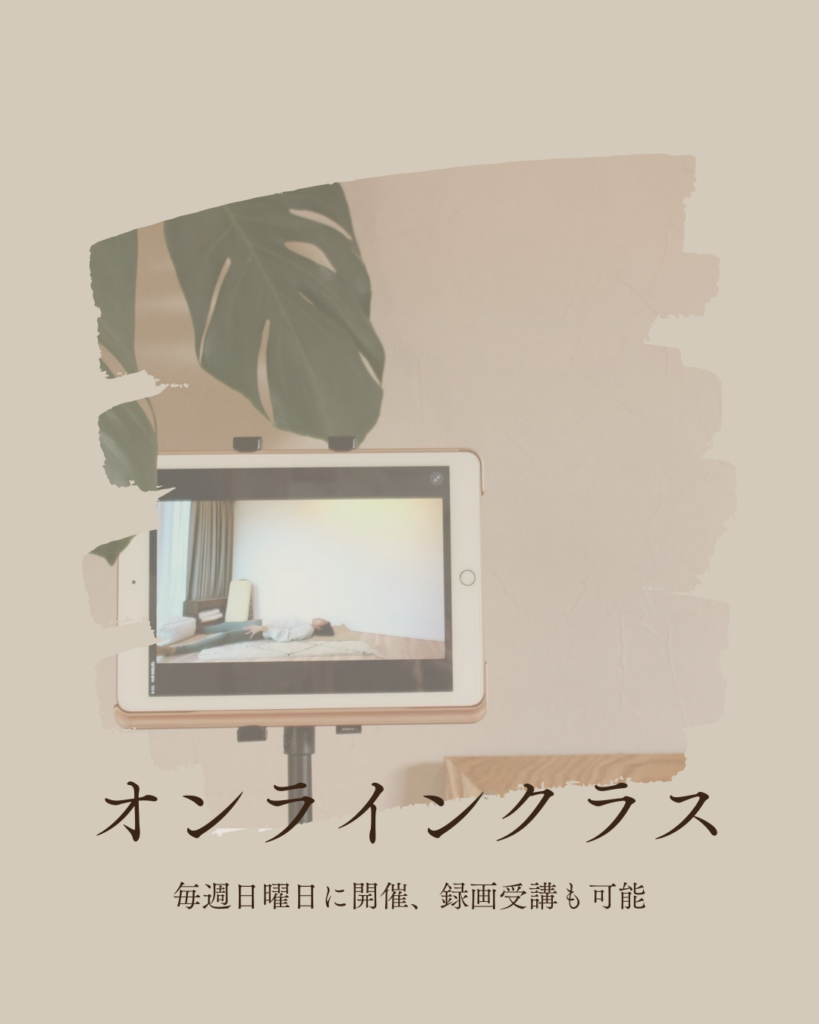 その日の体調に合わせ、呼吸とやさしい動きで体の内側から無理なく整えていきます。