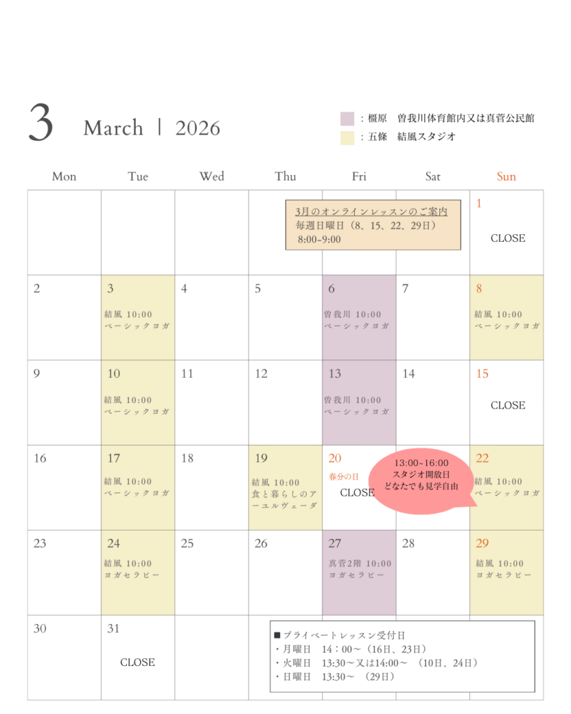 (橿原クラス、五條クラスは一緒の予約ページのため、曜日をよくご確認ください)